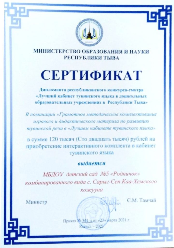 «Грамотное методическое комплектование игрового и дидактического материала по развитию тувинской речи в «Лучшем кабинете тувинского языка!»».