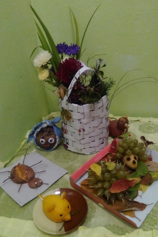 В своих работах ребята использовали разные природные материалы – шишки, листья, цветы, веточки, мох, овощи, фрукты и т.д. На конкурсе были представлены лесные композиции, осенние сказки, игровые ситуации, панно, игрушки и многое другое.