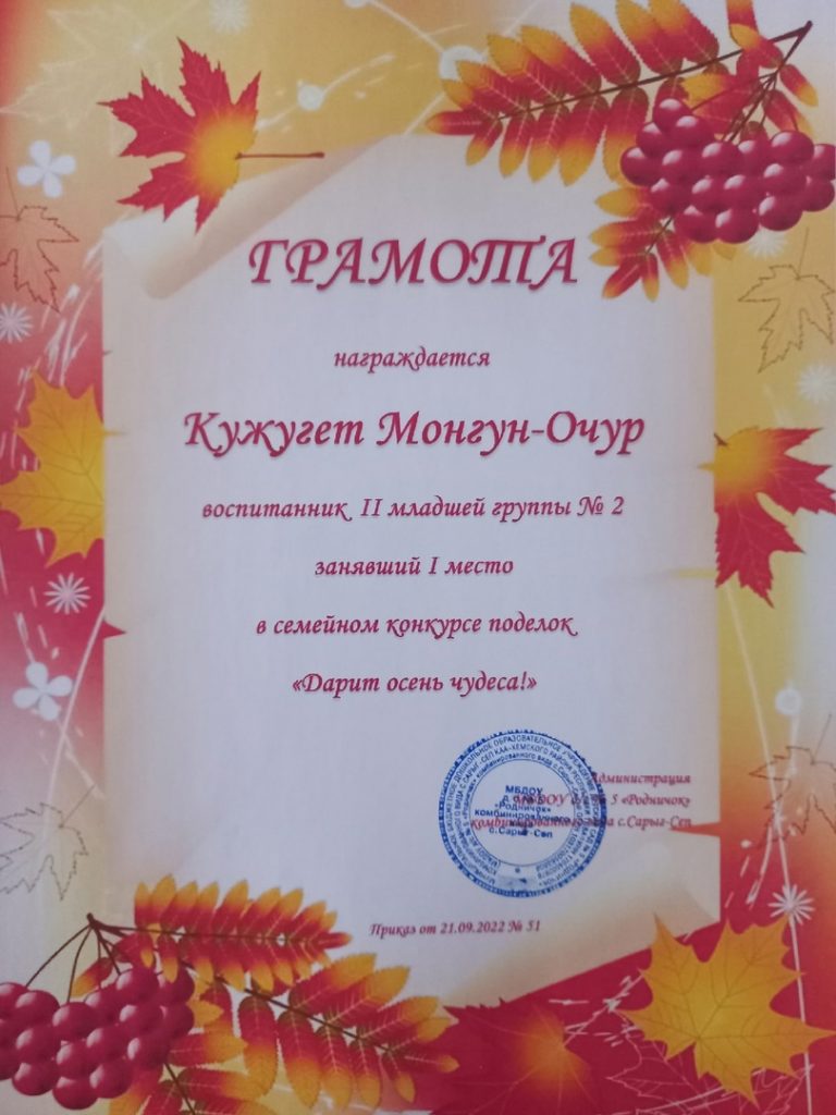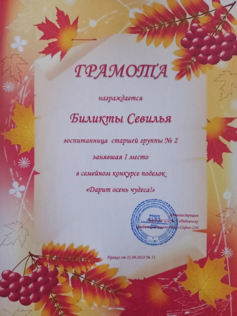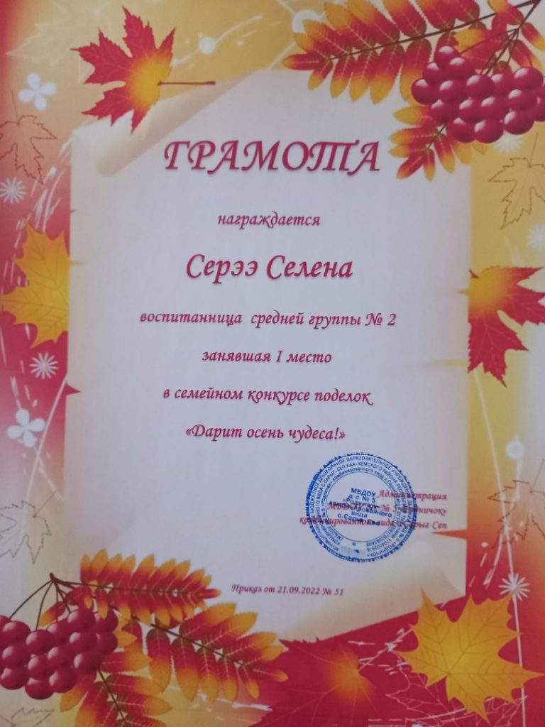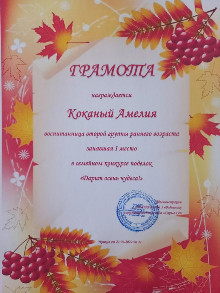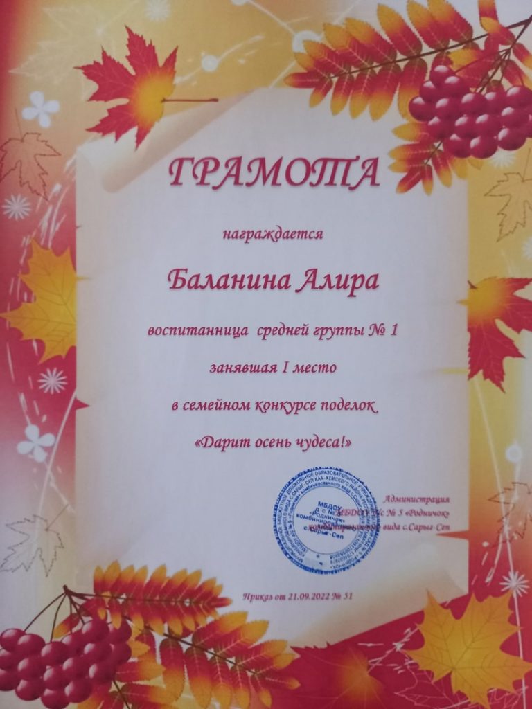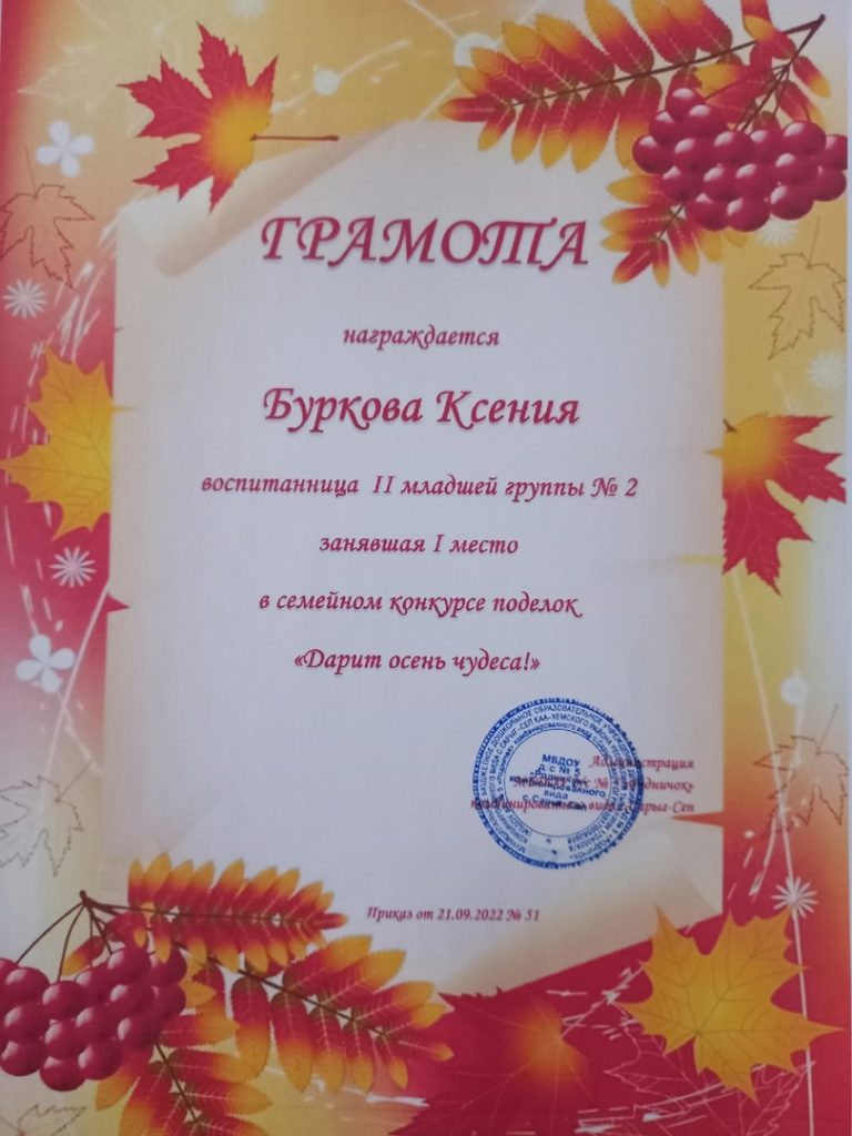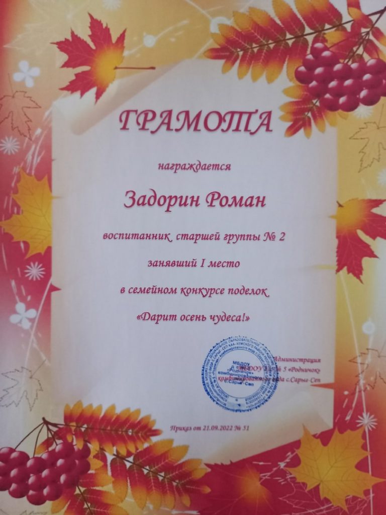 Без рубрики Поздравляем победителей семейного смотр-конкурса поделок «Дарит осень чудеса». 29.09.2022 /