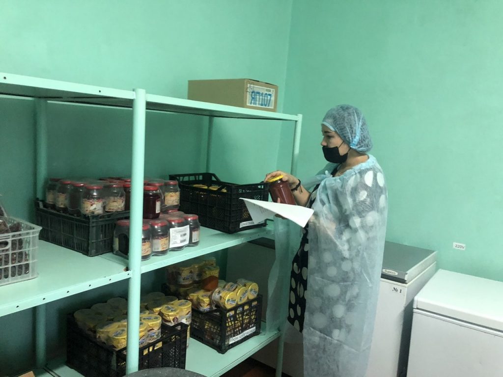 1. в складских помещениях по хранению скоропортящихся продуктов нарушений не выявлено, температурный режим и санитарное состояние помещения соблюдаются;