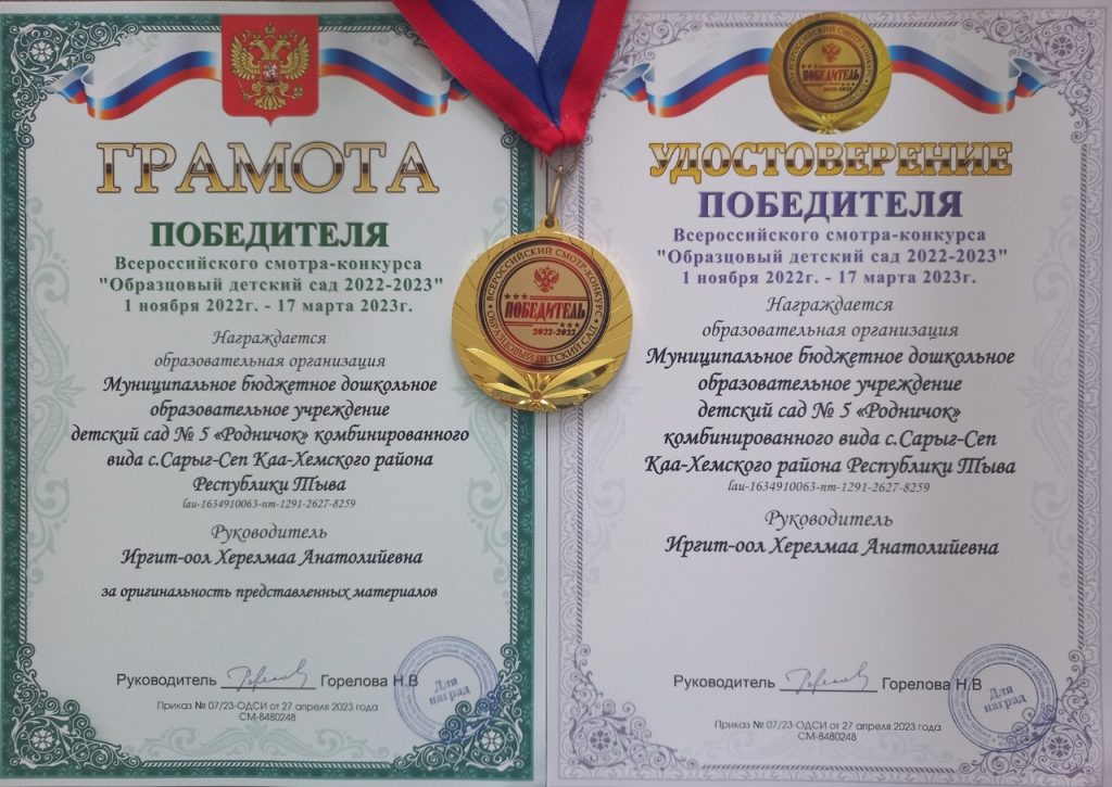 В 2022-2023 учебном году наш детский сад принял участие и стал Победителем во Всероссийском смотре-конкурсе «Образцовый детский сад 2022-2023».