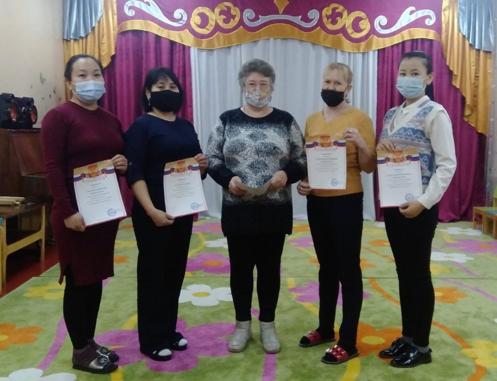 По результатам конкурса педагогического мастерства «Воспитатель года — 2021» МБДОУ д/с № 5 «Родничок» комбинированного вида с.Сарыг-Сеп, протокола педагогического совета от 29.01.2021 года № 3, награждены грамотами следующие участники педагогического мастерства «Воспитатель года — 2021» МБДОУ д/с № 5 «Родничок» комбинированного вида с.Сарыг-Сеп: