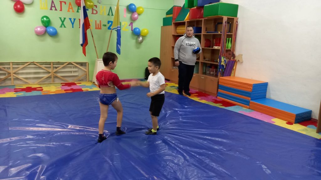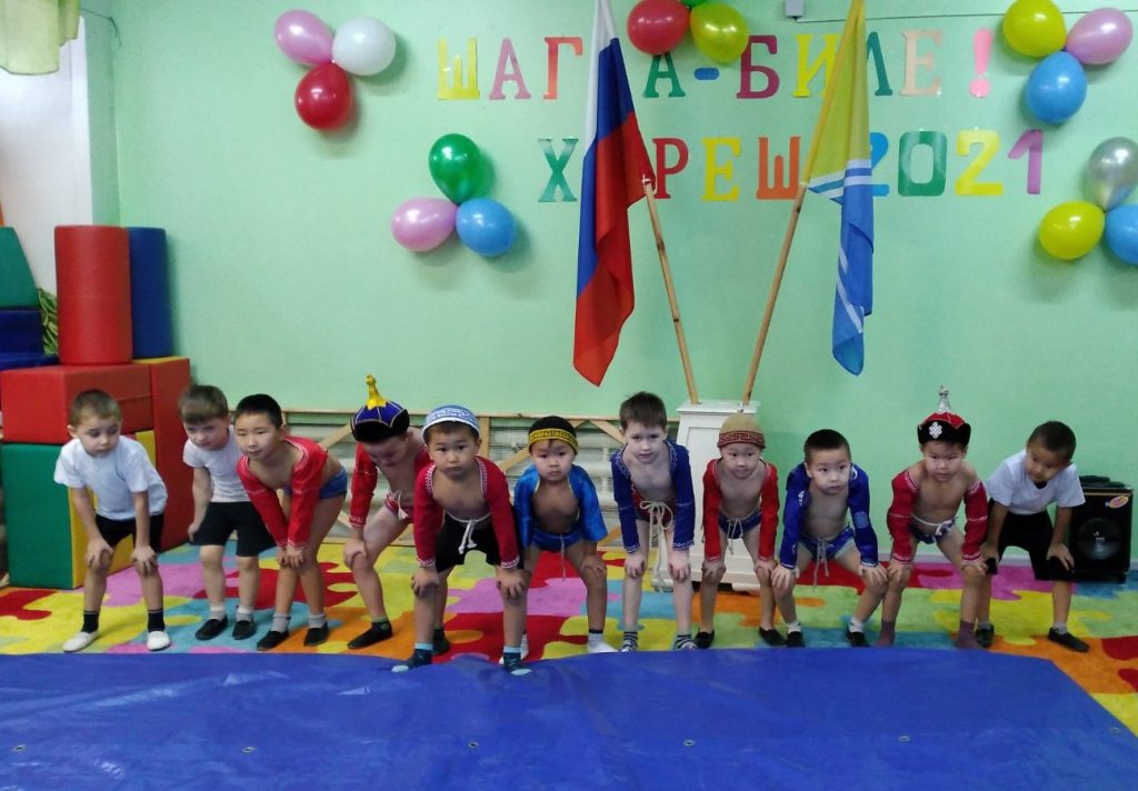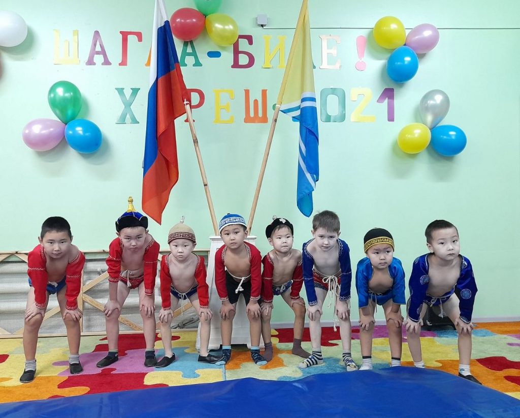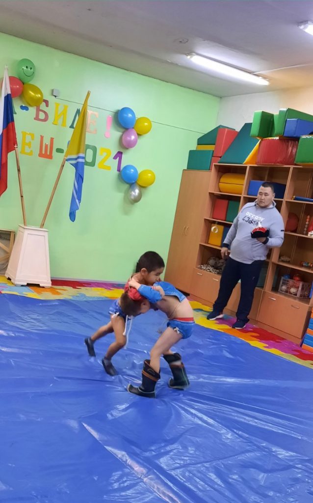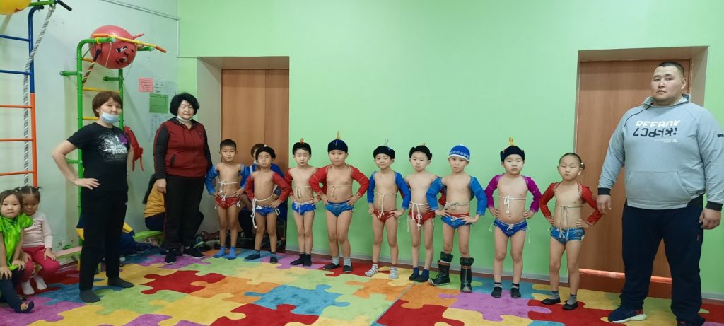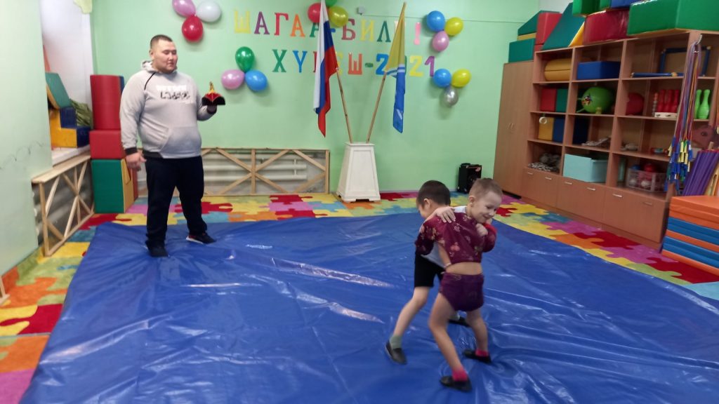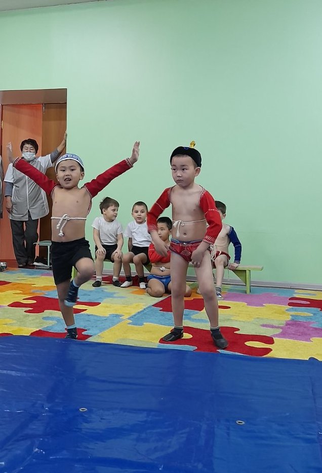 Соревнования по национальной борьбе Хуреш в подготовительных к школе группахв честь празднования «Шагаа — 2021».