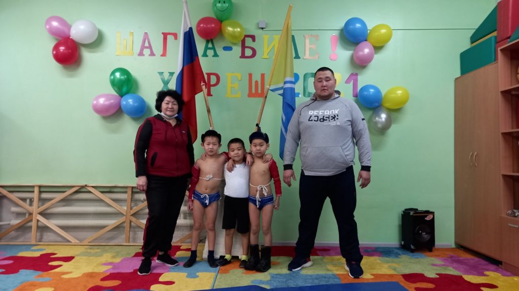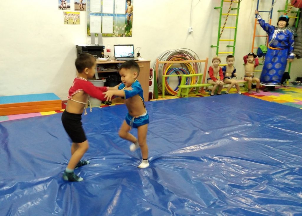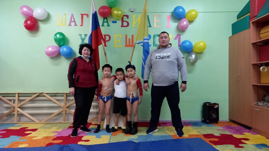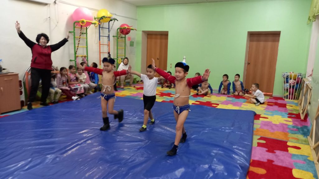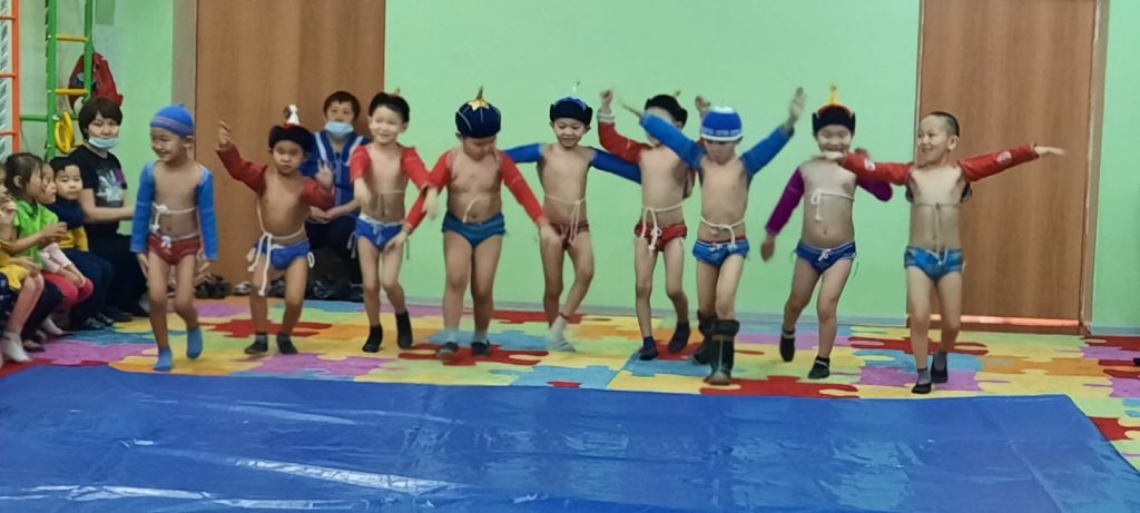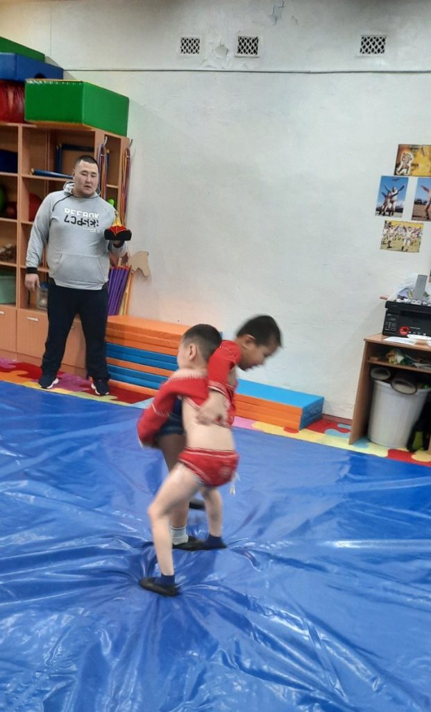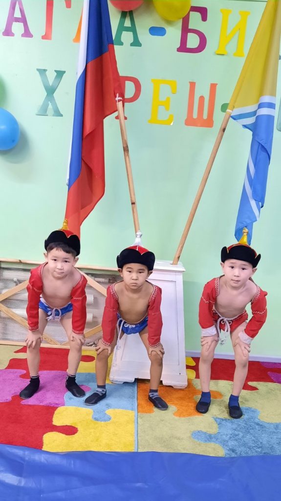 Соревнования по национальной борьбе Хуреш в подготовительных к школе группахв честь празднования «Шагаа — 2021».